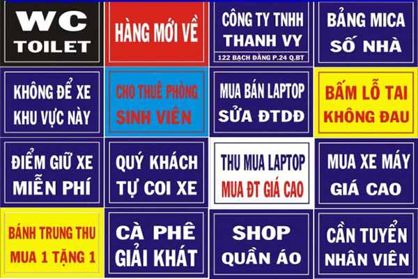 Một số loại bảng hiệu mica thông dụng hiện nay.